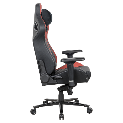 - مسند الرأس المغناطيسي ودعم قطني: إحدى الميزات البارزة هي مسند الرأس المغناطيسي والدعم القطني، اللذين يوفران دعمًا مخصصًا للرقبة وأسفل الظهر، وهو أمر ضروري لجلسات الألعاب الطويلة. يمكن تعديل نظام دعم مسند الرأس وأسفل الظهر ليناسب التفضيلات الشخصية.